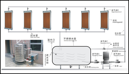 不要將系統(tǒng)內(nèi)的水溢出來。如果水位太高,濕簾的底部將一直被泡在水中變得過分充水,這將影響介質(zhì)的自給水系統(tǒng),縮短其使用壽命