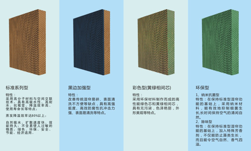 細(xì)菌生長,長時間保持空氣的清新自然。除味型特性:在保持標(biāo)準(zhǔn)型濕簾功能的基礎(chǔ)上,加入特殊芳香劑,不僅能防止藻類生長,而且能令空氣清新自然、香氣四溢。